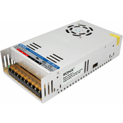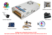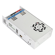 Fuente de alimentación de 12 VCD 30A. Esta fuente puede ser alimentada a 100 - 220 VCA y es ideal para alimentación de tiras led, maquinas, equipos de sonido, aparatos de iluminación, radio entre otras muchas aplicaciones . La fuente incluye protección contra sobre carga, corto circuito y esta integrada con un ventilador que se activa automáticamente para evitar sobre calentamiento.